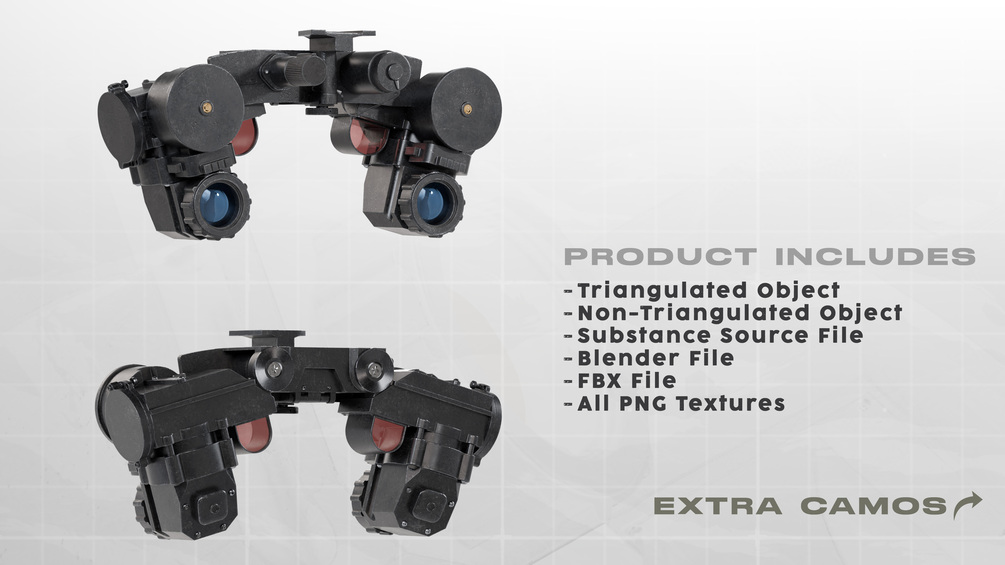 This 3D model is a 1 to 1 replica of the Night Vision goggles.Modeled and UV in Blender, and textured in Substance Painter.
